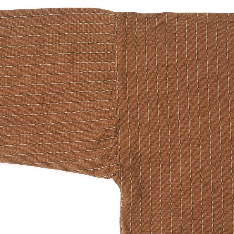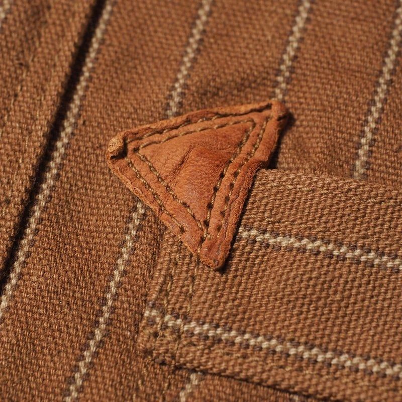 グリーンバウムブラザーズが19世紀に生まれて消えた他の西海岸ワークウェアブランドとは一線を画す証拠がまた発見されました。このダックによる太いストライプは、19世紀にグリーンハウムがセールスマンサンプルとして製作したもの。本格的な実物の縫製で、グリーンバウムはデニムだけでなく、早くからこのような特徴ある生地を展開していました。それは他でもなく、ヨーロッパから東海岸へと、届く輸入品を入手するルートを確立していたからに他なりません。