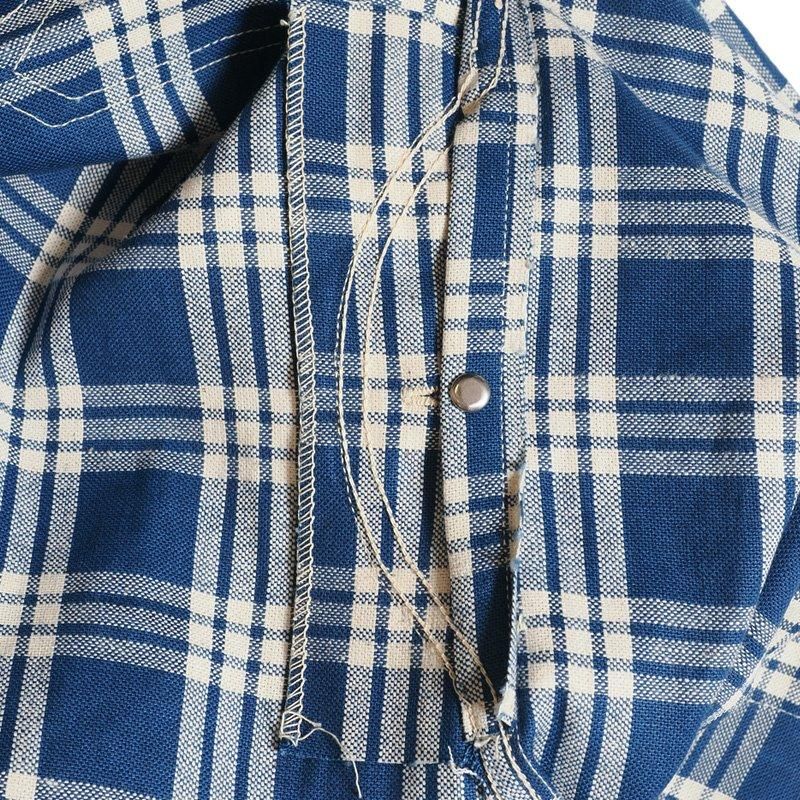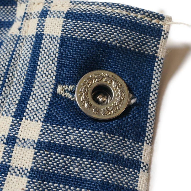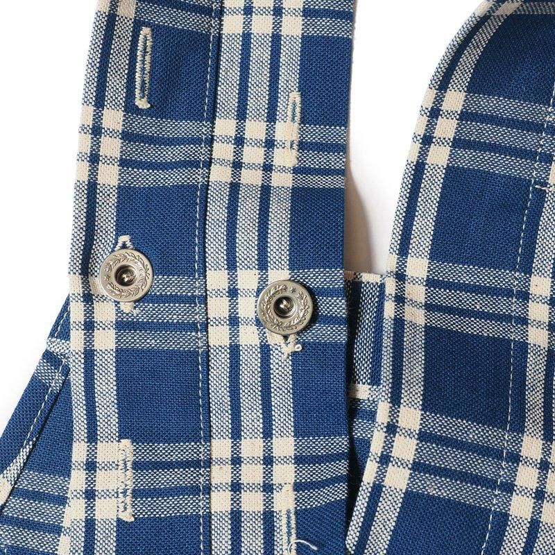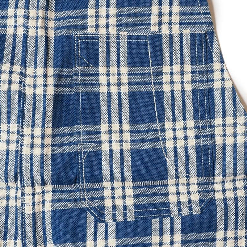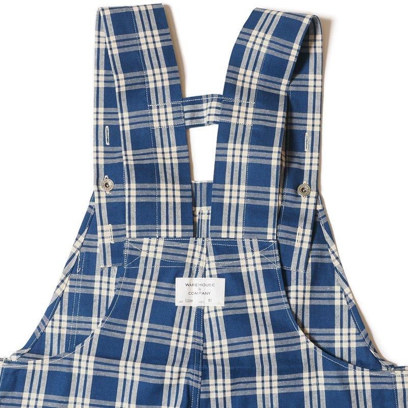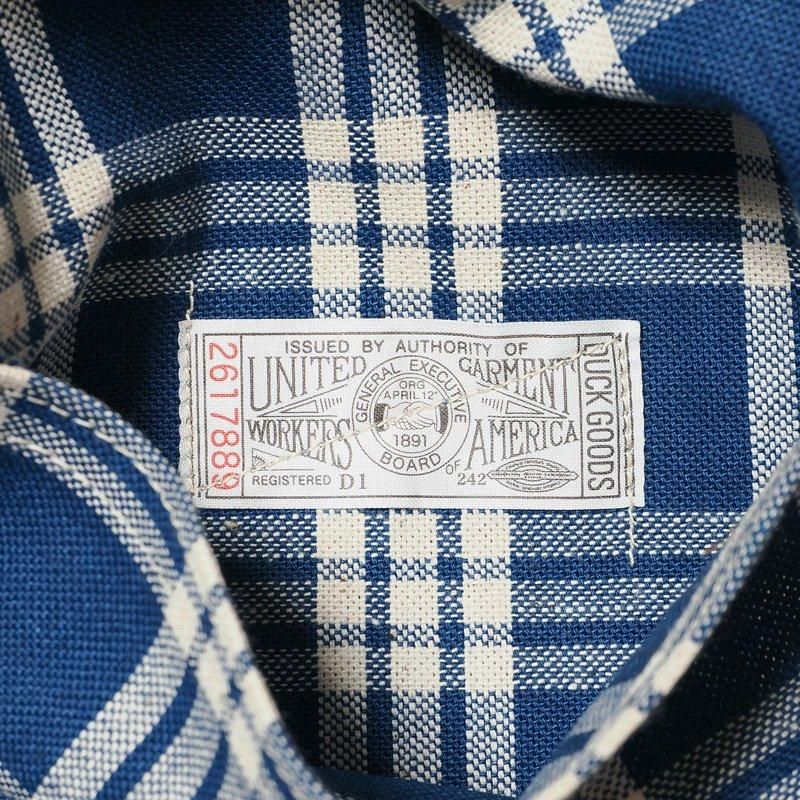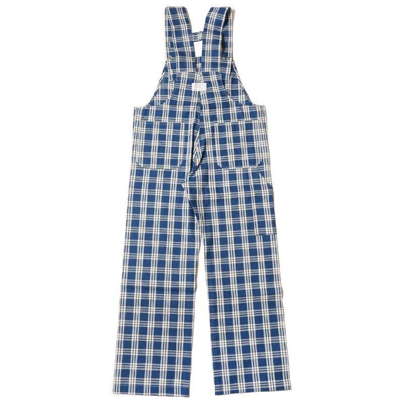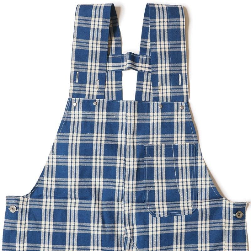 縫製に巻き縫いが使用されていることから、1930年代に製造されたと考えられるインディゴチエックのオーバーオールです。アウトシームは縫い目の無い外巻き仕様で、通常の倍の太さがある襷のようなショルダーストラップが、力強く、武骨な印象を与えます。インディゴチエックとこのシルエットが、他にはないオーバーオールの魅力を生んでいます。