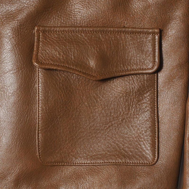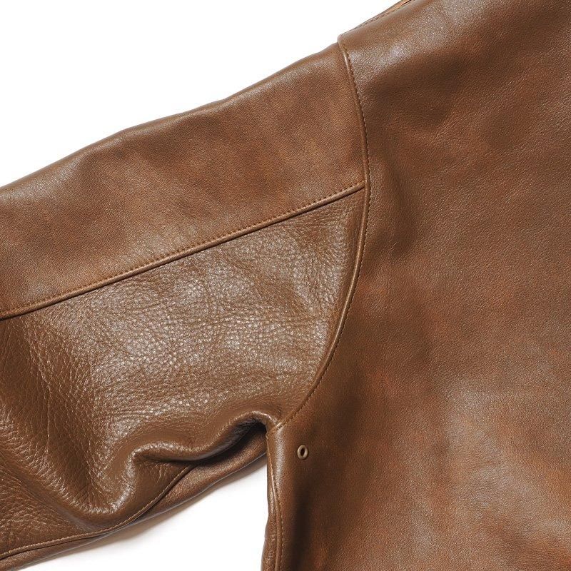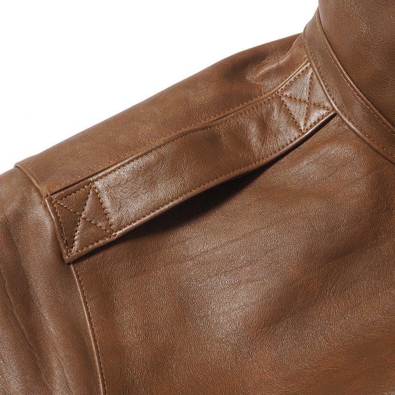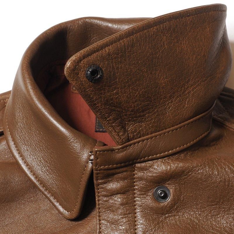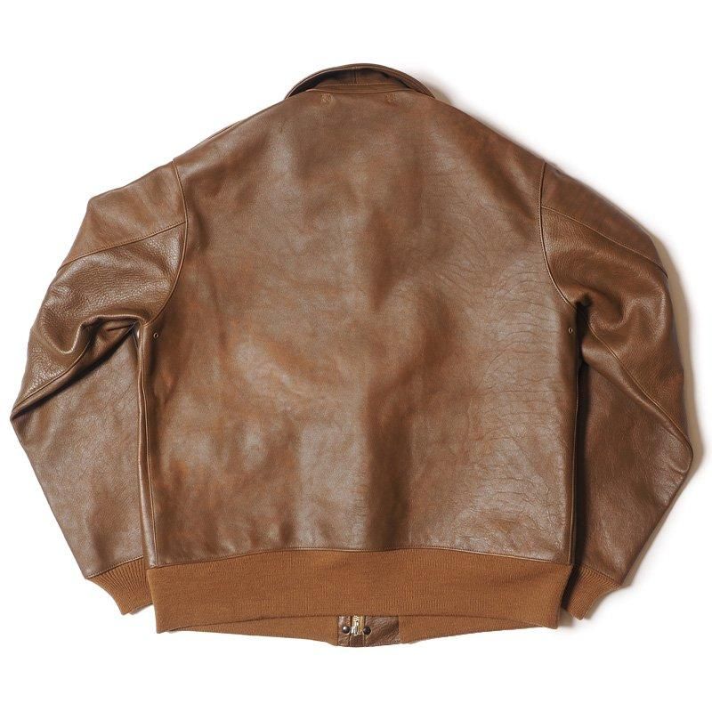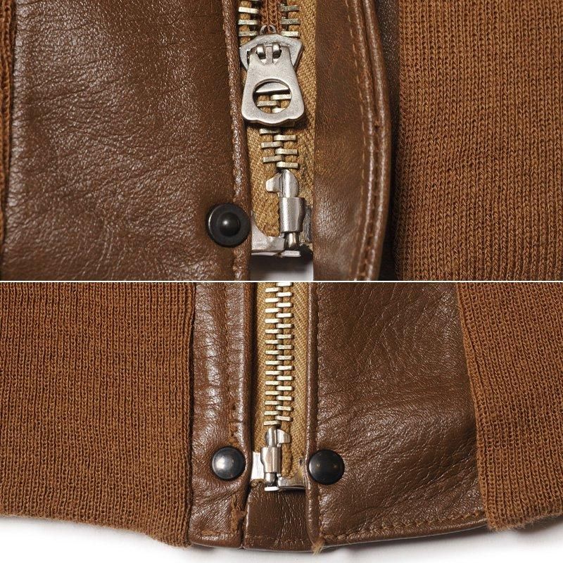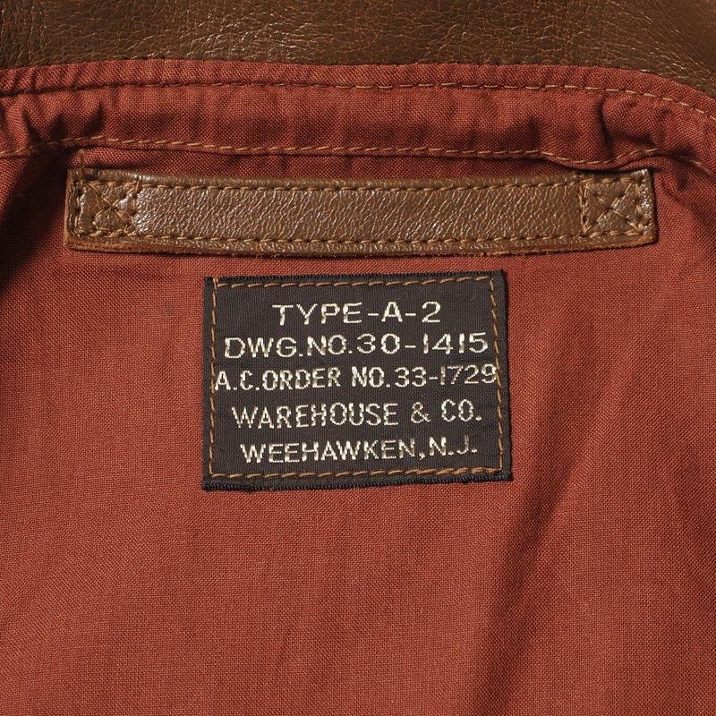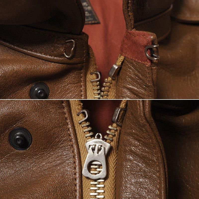 1931年から始まった,その納入業者の筆頭に立っていた「Werber Leather Coat Co社」は当初、ポケットフラップにA-1ジャケットと同じ、穴かがりのボタンを付けていました。レザージャケットに関する特許を複数取得するなど、既にクウォーターマスターから信頼を得ていた同社は、その経験を生かしてポケットのフラップをスナップボタン式に改良しました。NRAによる労働組合の発足で、生産工場としてはそれまでよりも多くの制限がかけられていたなかで、「WerberLeatherCoatCo」は軍が求めるコストダウンと機能性のアップデートに成功したのではないでしょうか。こうして1933年、完全なる「TYPEA-2」として最初に納入したものがOrderNo「33-1729」です。そのファーストモデルを、奇跡的にウエアハウスが手にしたのは数年前のことです。それから少しずつ、じっくりと資材の開発が始まり、長い時をかけてようやく誕生することになりました。外観から見た大きな特徴は、リベットが穿たれたファスナーエンドです。1930年代初頭独特のハトメよりも、さらに古いこのジッパーは、まさに最初期のA-2の象徴です。