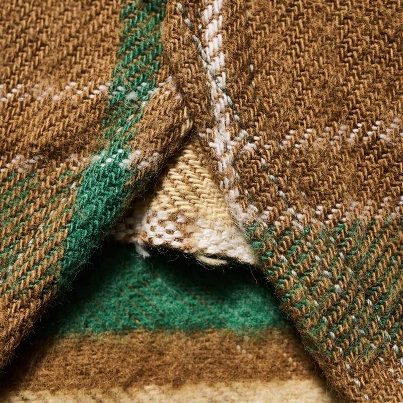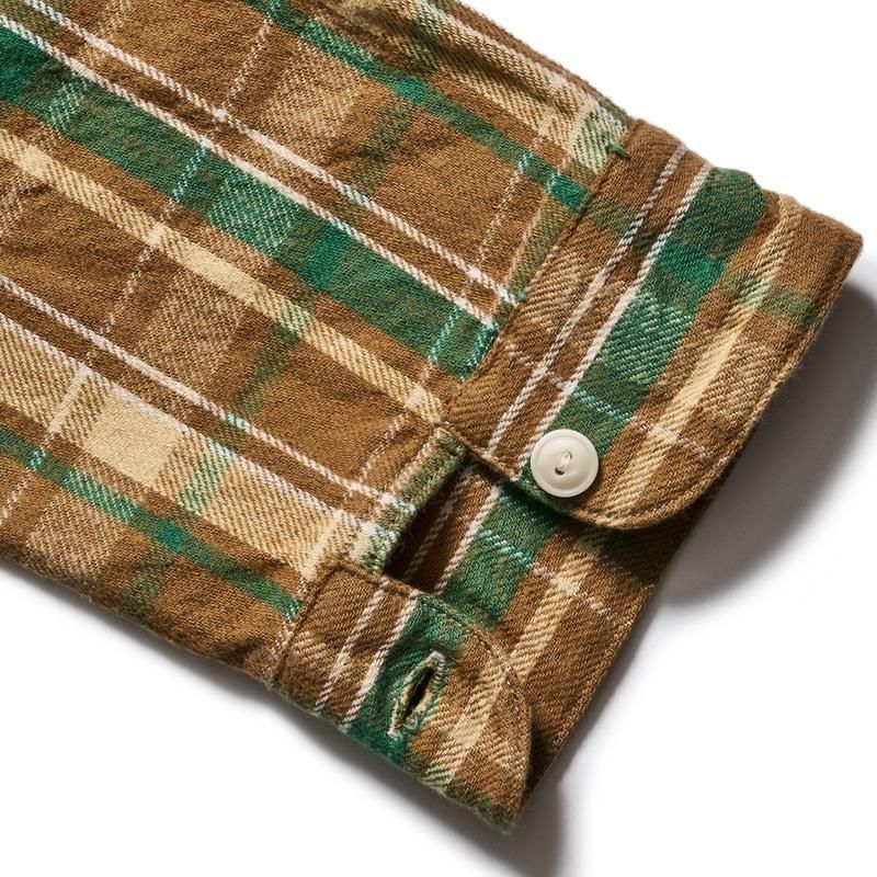 私は某ワークウェアメーカーが採用していたストームカフが大好きです。袖にゴミやホコリが入らないようにするためのものですが、袖口を簡単に仕上げることができるんです。ロールアップもしやすいしね。それに、このシャツのフランネル生地や柄は素晴らしいです。今回のコレクションでは、2種類のカラーリングを作りましたが、とても気に入っています。