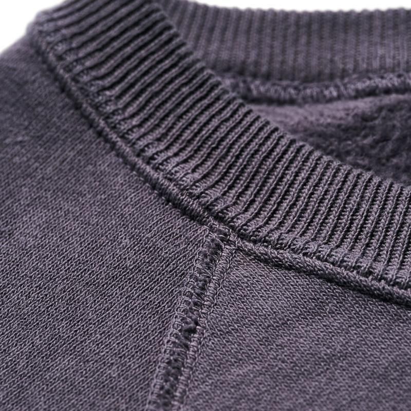 着古されたヴィンテージスウェットを徹底的に研究して再現されたセカンドハンドシリーズのスウェットシャツです。洗濯と乾燥を繰り返すことで変化が生まれた裏起毛、そして褪色でしか表現できないような絶妙なフェードカラーは、「新品の状態で古着の風合い」という「セコハン」そのものです。ややゆとりのある身幅の設定により、着用時の独特のドレープ感もお楽しみいただけます。プリントをしたモデルでは「歪み」「染み込み」「掠れ」といった要素も徹底再現しています。