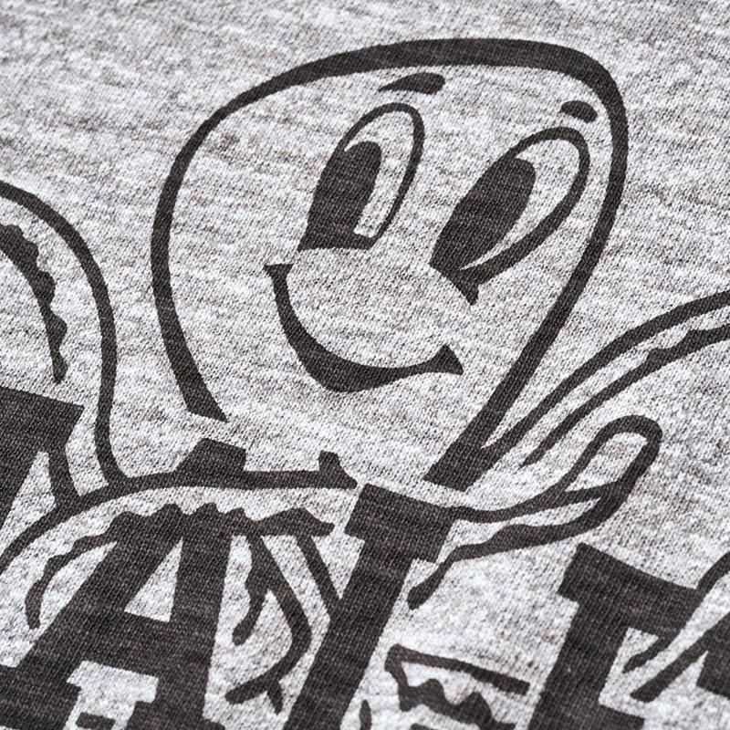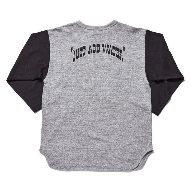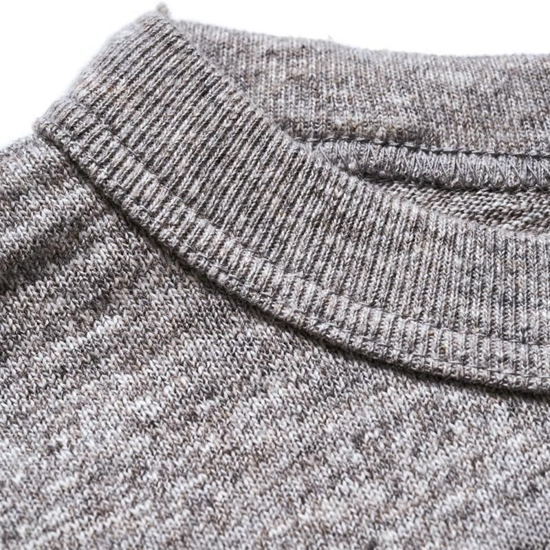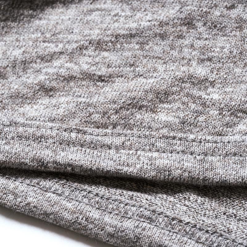 12番のムラ糸で独特の陰影が出るように編まれたこの生地はシャドウボーダーと呼ばれており、無地でありながらうっすらと横段のようなムラが浮かびます。