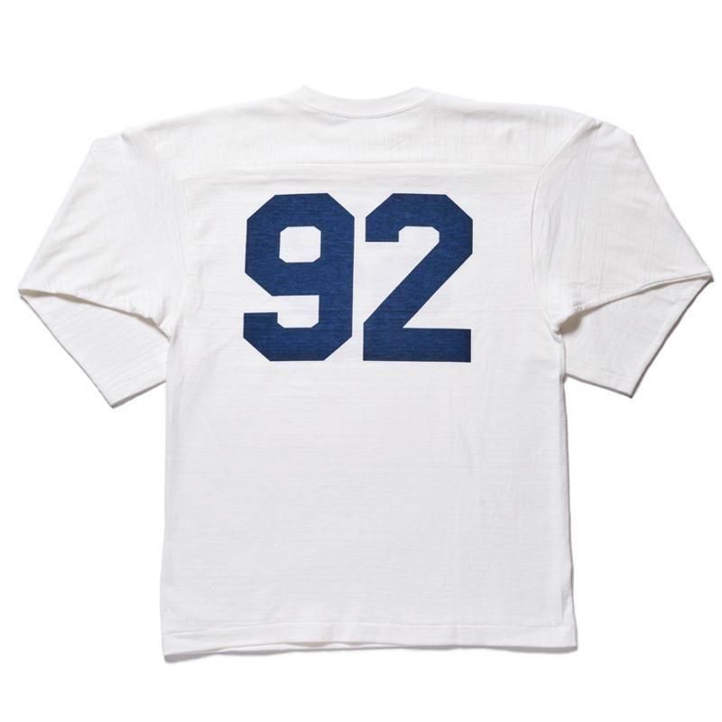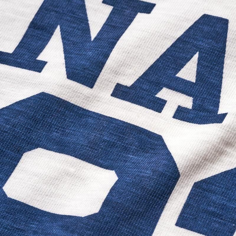12番のムラ糸で独特の陰影が出るように編まれたこの生地はシャドウボーダーと呼ばれており、無地でありながらうっすらと横段のようなムラが浮かびます。